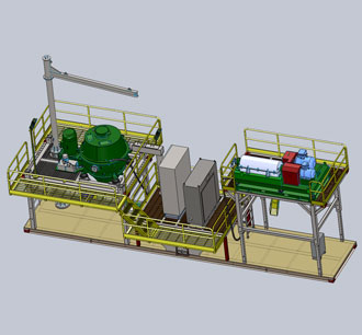 GNCM-40A整套泥漿不落地處理設(shè)備撬裝系統(tǒng)的總重量約為: 18.5 Tons ( 包含圖中所有設(shè)備)